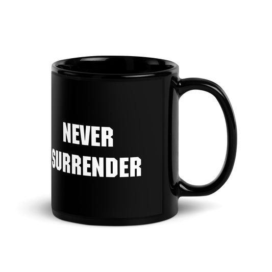 Trump Iconic Fight Image - Never Surrender Black Mug